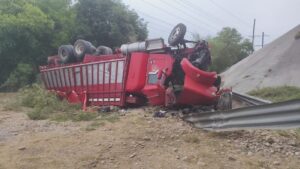 Ciudad Victoria, Tamaulipas. – Por causas que aún se desconocen, un camión tipo Torton cayó del puente del Río Corona