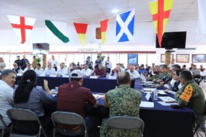 Gobernador Américo Villarreal y coordinadora nacional de PC, Laura Velázquez, realizan sobrevuelo en zonas vulnerables del sur del estado.