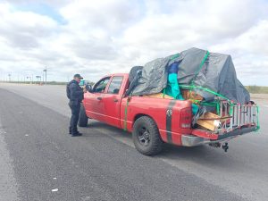 Acompañan a paisanos durante su viaje por Tamaulipas. Nuevo Laredo, Tamaulipas.– Personal de la Guardia Estatal de Apoyo Carretero