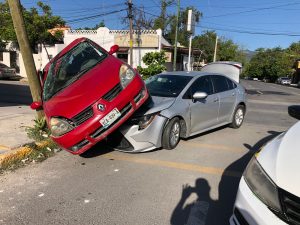 Por ignorar un disco metálico de alto, un conductor ocasionó un aparatoso accidente en el crucero del Nueve Mina.
