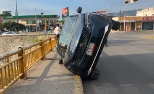 Vehículo queda recostado sobre el camellón tras accidente en calle 8