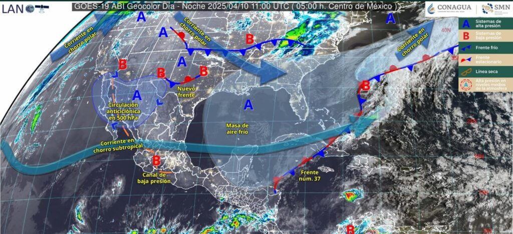 Asimismo, el SMN de la Conagua señaló que continuará el ambiente caluroso a muy caluroso, durante el día, en el noroeste y occidente de México, así como escaso potencial de lluvia en gran parte del territorio nacional.