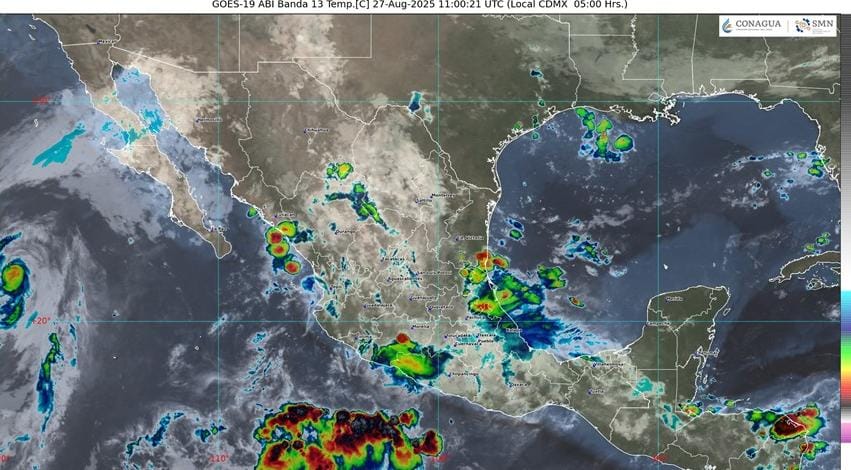 El ingreso de aire húmedo del Océano Pacífico propiciará lluvias puntuales muy fuertes en Jalisco, Colima y Michoacán; y el paso de la onda tropical número 26 sobre el sur del territorio nacional, mantendrá la probabilidad de lluvias puntuales intensas en Oaxaca; y puntuales muy fuertes en Guerrero.