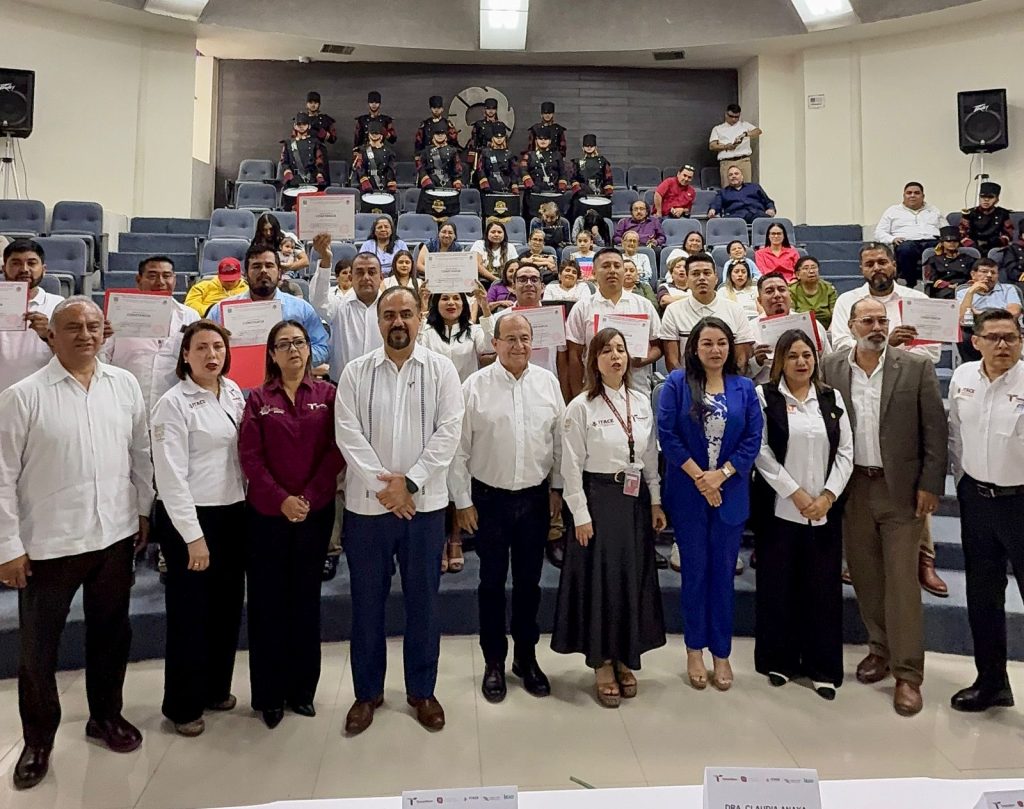 En el marco de sus actividades, García Fuentes también participó en la ceremonia de fin de curso de la Cuarta Generación de operadores de 5ta rueda del ITACE Plantel Matamoros, donde se reconoció el esfuerzo de las y los egresados del programa de formación para el sector del transporte de carga, destacando además la participación de la primera mujer conductora capacitada en esta generación.