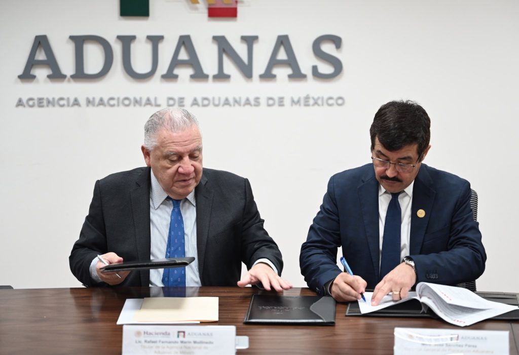 Ciudad de México.- El rector de la Universidad Autónoma de Tamaulipas (UAT), Dámaso Anaya Alvarado, y el titular de la Agencia Nacional de Aduanas de México (ANAM), Rafael Marín Mollinedo, firmaron un convenio de colaboración que permitirá a la casa de estudios fortalecer la formación aduanera y técnica de las nuevas generaciones y consolidar su papel como puente entre la educación superior y los sectores estratégicos del país.