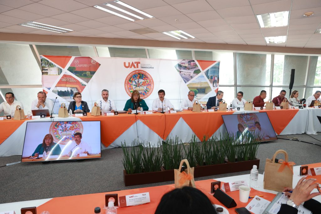 Tampico, Tamaulipas.- El rector de la Universidad Autónoma de Tamaulipas (UAT), Dámaso Anaya Alvarado, encabezó la 14.ª Reunión del Colegio de Directores, llevada a cabo en el Centro Universitario Sur (CUS), donde se reunió con titulares de las 27 dependencias académicas y funcionarios del gabinete de la Rectoría para revisar los avances institucionales y definir nuevas estrategias orientadas al fortalecimiento académico y administrativo de la casa de estudios.