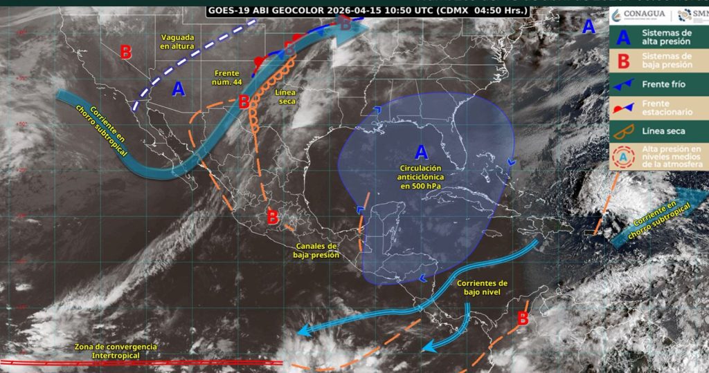 Ciudad Victoria, Tamaulipas. – Este día, una línea seca prevalecerá en el norte del territorio nacional, en interacción con el frente número 44, que se extenderá cerca de la frontera norte de México, con una vaguada en altura y la corriente en chorro subtropical, ocasionarán intervalos de chubascos en Coahuila, Nuevo León, Tamaulipas y San Luis Potosí, informó el Servicio Meteorológico Nacional.
