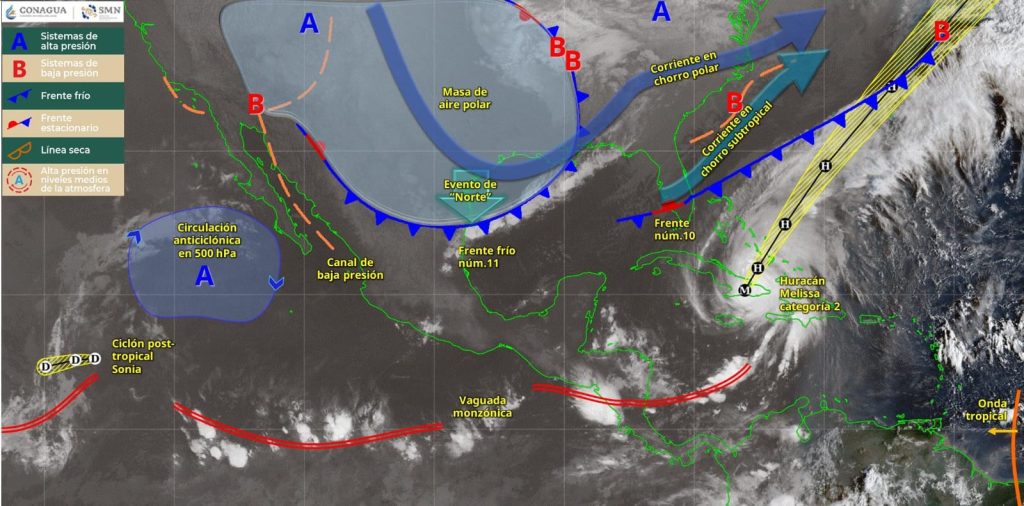 A su vez, señaló el SMN de la Conagua, se prevé un marcado descenso de la temperatura en la mayor parte de la República Mexicana, con probabilidad de heladas en los estados de la Mesa del Norte y la Mesa Central.