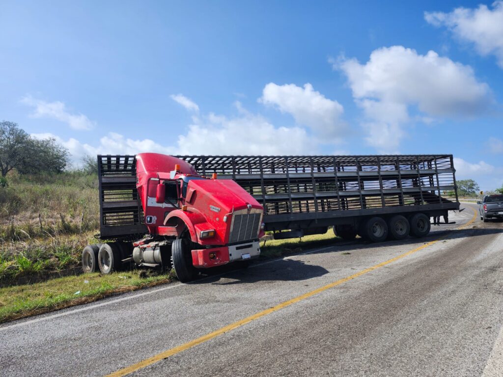 Tráiler se sale del camino en la Carretera Aldama Soto la Marina