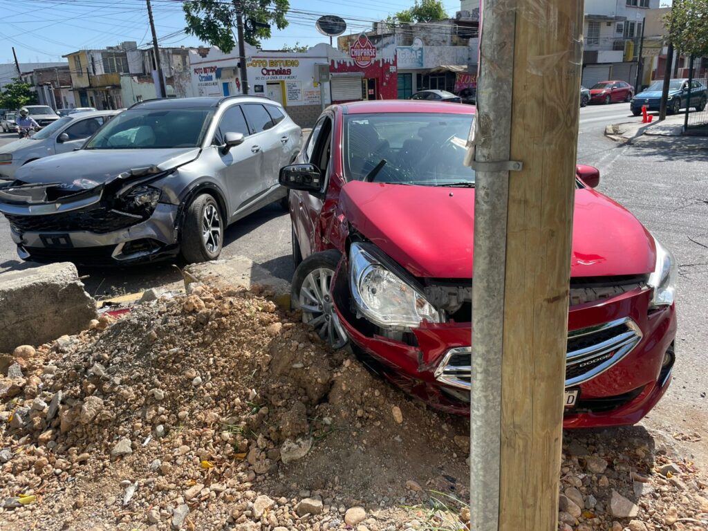 Al llegar al crucero con la Calle 19, el conductor del Attitude intentó ganarle el cambio de luces del semáforo y se estrelló contra el costado de una camioneta de la marca Kia de reciente modelo que circulaba en sentido de norte a sur.