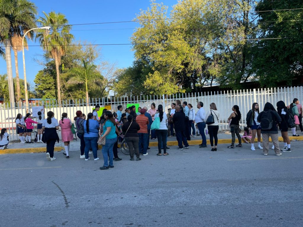 Reunidos afuera de la escuela, los padres y madres de familia recabaron firmas para entregarlas a la Secretaría de Educación de Tamaulipas.