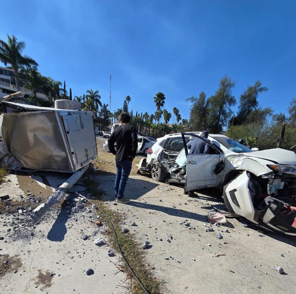 Debido al peso que transportaba en la traila que remolcaba, la camioneta quedó fuera de control y declinó su trayectoria y la traila se impactó contra un poste de concreto el cual destrozó por completo.