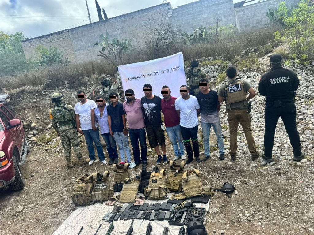 Derivado de trabajos de inteligencia y de la estrecha colaboración entre autoridades federales y estatales, se aseguró un inmueble en el que fueron detenidos Jesús Iván “V”, Josúe Orlando “M”, Juan Manuel “G”, Sergio Pablo “M”, José Luis ”H”, José Luis “P”, Ángel Daniel “V” y Juan Antonio “H”.
