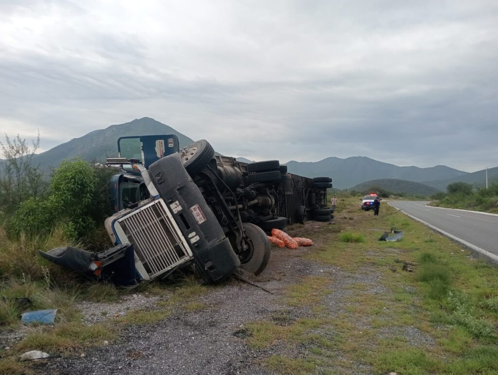 Vuelca camión cargado con zanahorias cerca de Jaumave