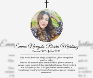 Ciudad Victoria, Tamaulipas . – A través de redes sociales, la familia de Emma Nereyda Rivera Martínez confirmó hoy
