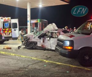 Posterior al choque, el vehículo quedó en una estación de servicio muy cerca de las bombas despachadoras de combustible. Ciudad