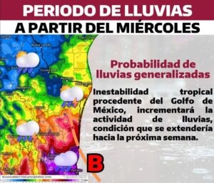 Ciudad Victoria, Tamaulipas.- La Coordinación de Protección Civil Tamaulipas informó que a partir del miércoles y jueves, las condiciones metereológicas
