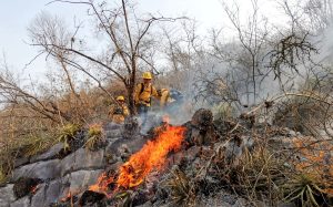 Ciudad Victoria, Tamaulipas.- Un incendio forestal detectado en la zona serrana del municipio de Bustamante mantiene en alerta a